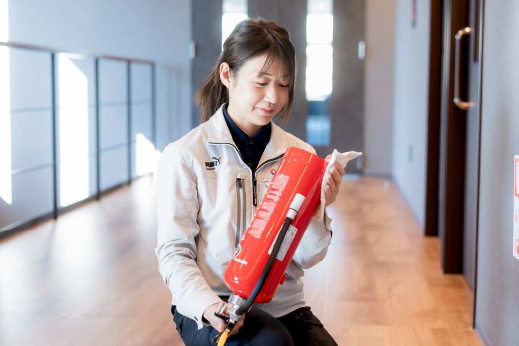 現在は消防設備の点検業務を担当しています。現場での点検や工事対応のほか、お客様への説明、日程調整、報告書の作成などを行います。現場では、現場管理という立場で協力会社の職人さんと連携しながら、主に安全確認や作業の段取りなどを担当しています。先輩の中には工事作業に積極的に関わる人もいますが、私はまだ作業に関わる場面は多くなく、現場の管理が中心です。資格も取得したので、これからは現場でできることを少しずつ増やしていきたいと思っています。